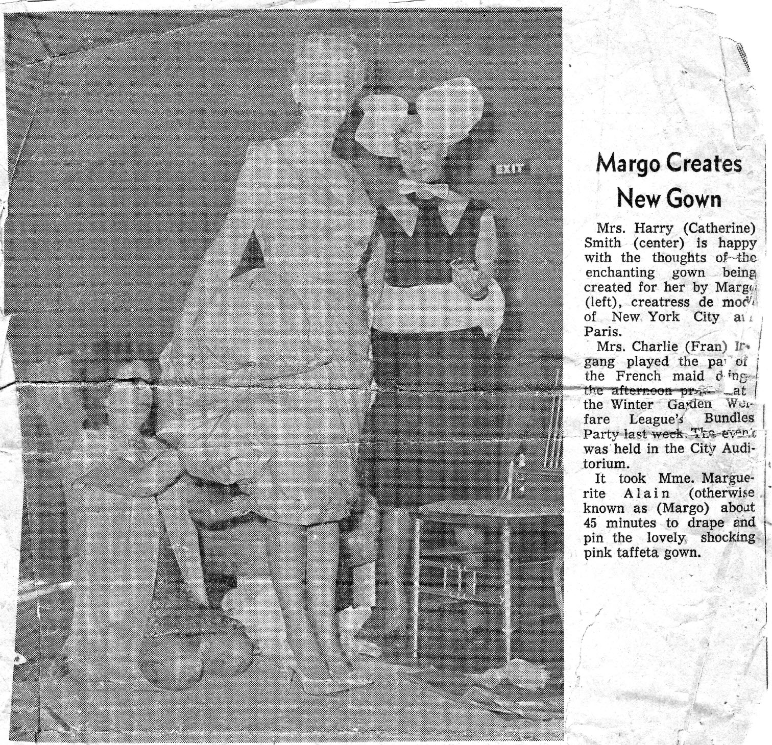 Margo was even invited by Fran to design evening gowns for local ladies at the Winter Garden Welfare League’s Bundles Party on Saturday night, April 15th, 1961.